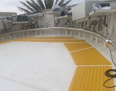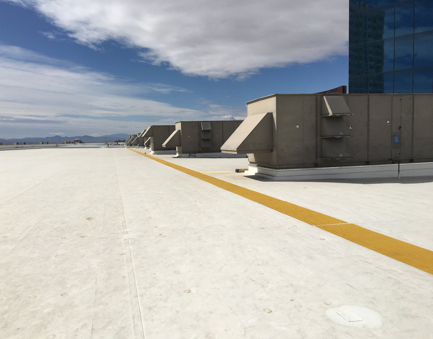 The sheer size of the roof surface of the Fontainebleau Las Vegas is monumental, with the scope of the roof itself being defined by multiple areas and levels with the convention center, hotel, and entertainment area.