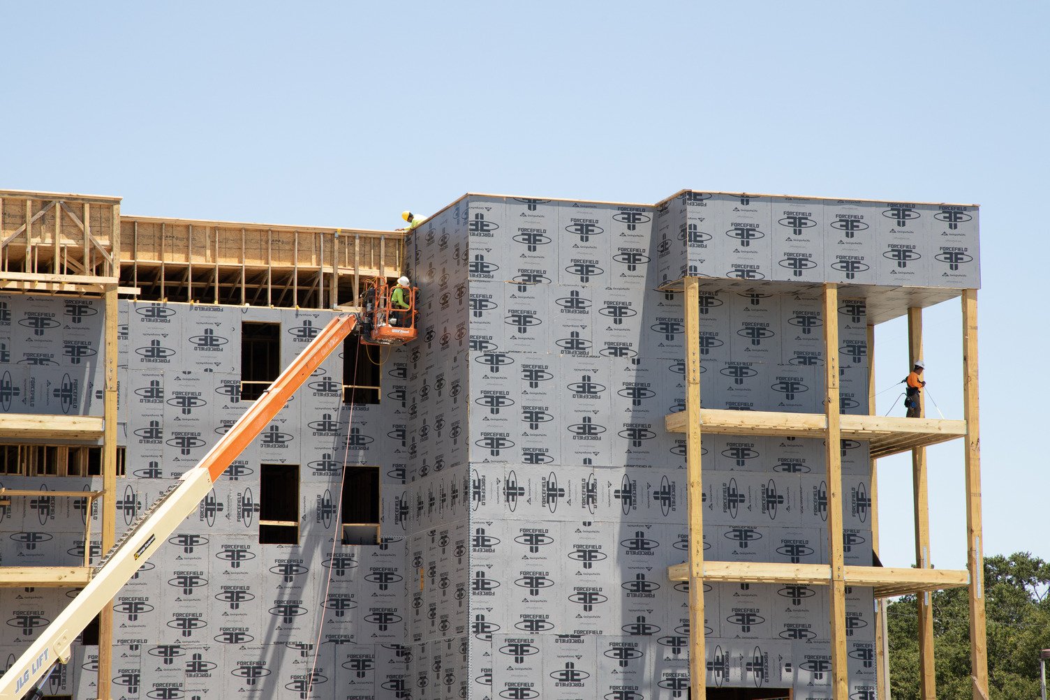 Rhett and Ed saw the best solution would be for them to use ForceField® Weather Barrier System, the integrated WRB sheathing system from Georgia-Pacific. Rhett already had experience using the system and is always on the lookout for ways to build more efficiently.